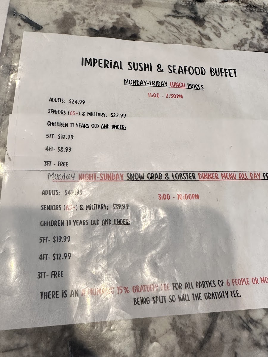 Imperial Sushi Seafood Buffet Menu